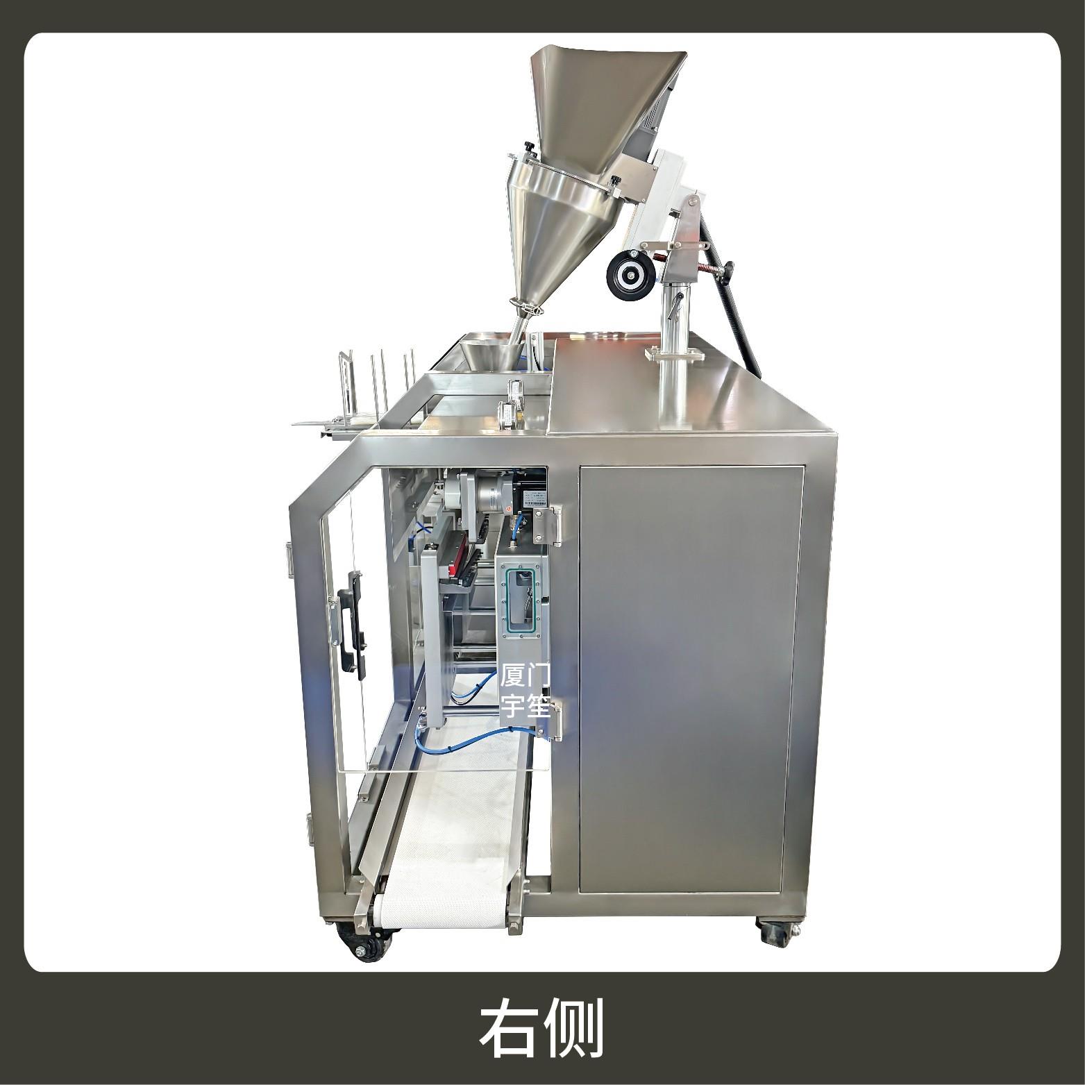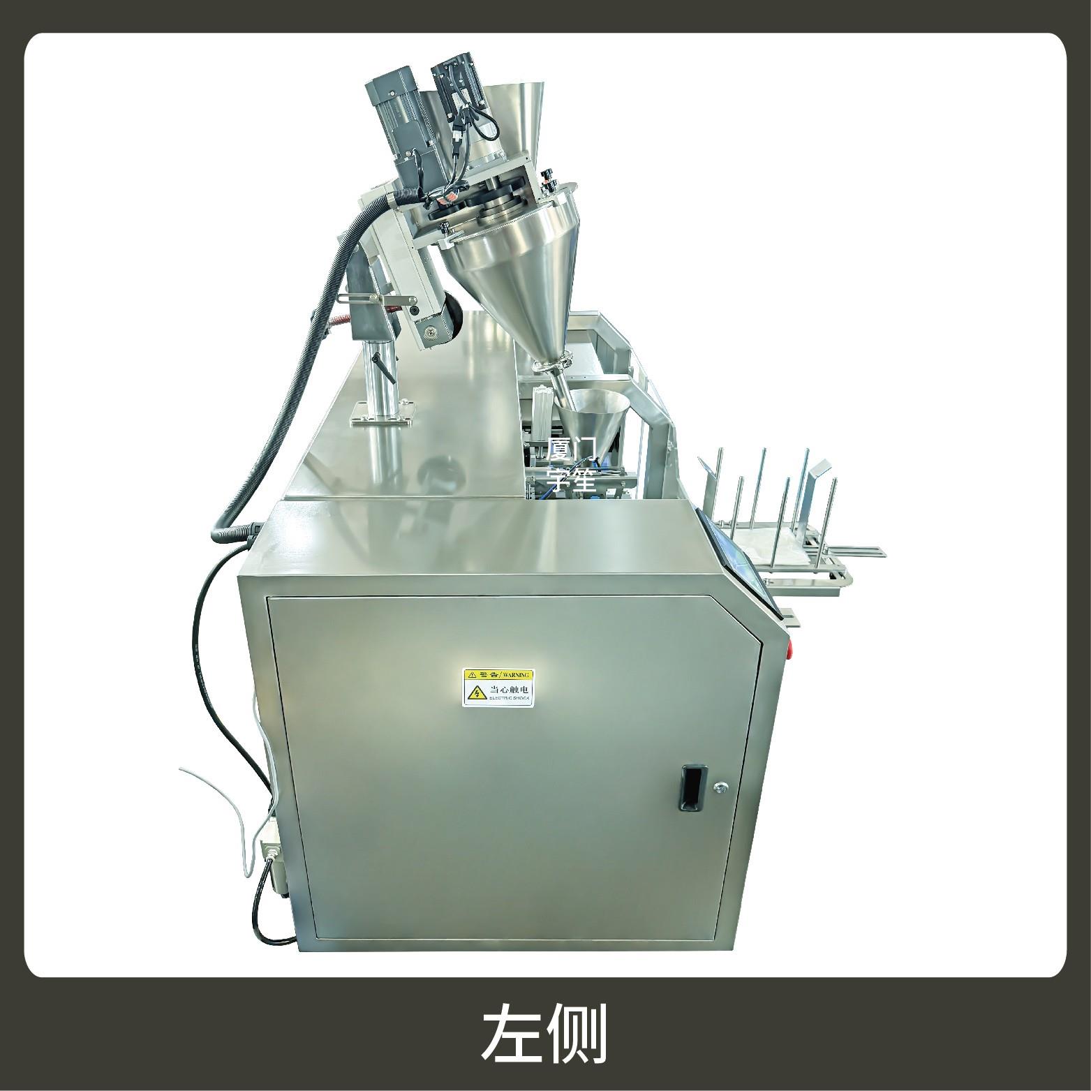 2、包裝流程全自動,可抽真空(真空度可達到-0.1Mpa)。可根據充填物料的性質選配不同的下料結構。